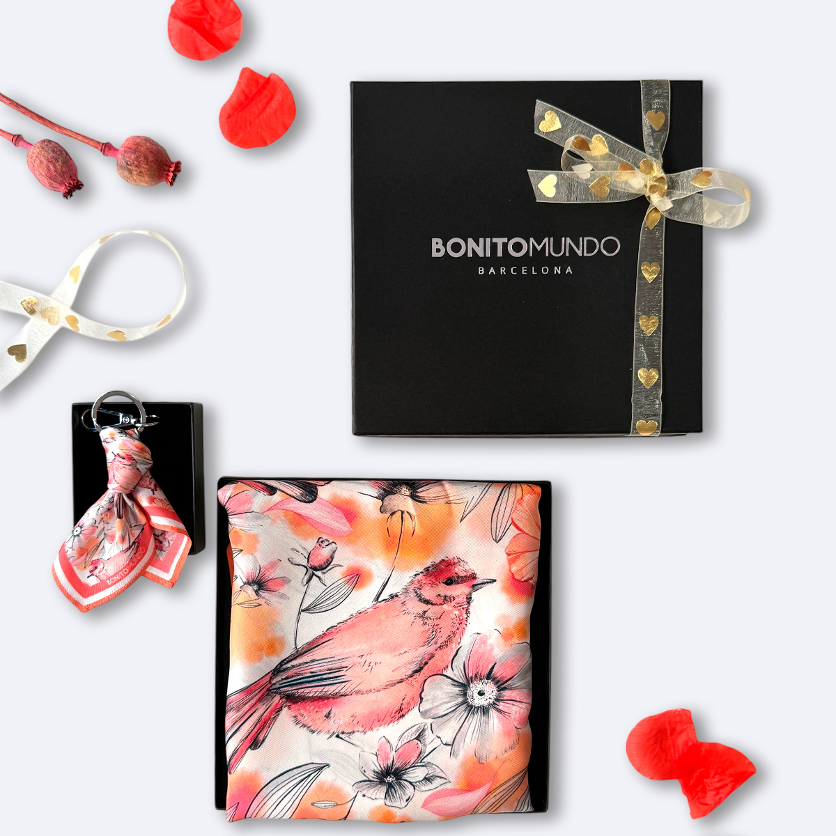 Pack de regalo: Pañuelo de seda Las Amelias + Charm a juego